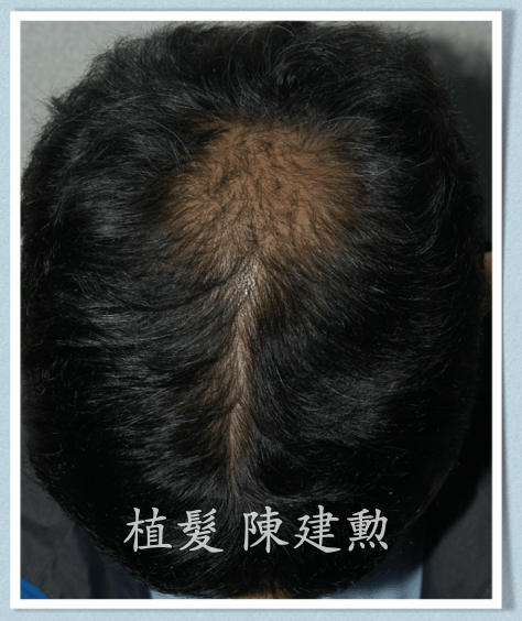 因為他頭髮禿的速度很快,不像一般的雄性禿是慢慢掉,他是兩三個月就禿成一塊很明顯的地中海。