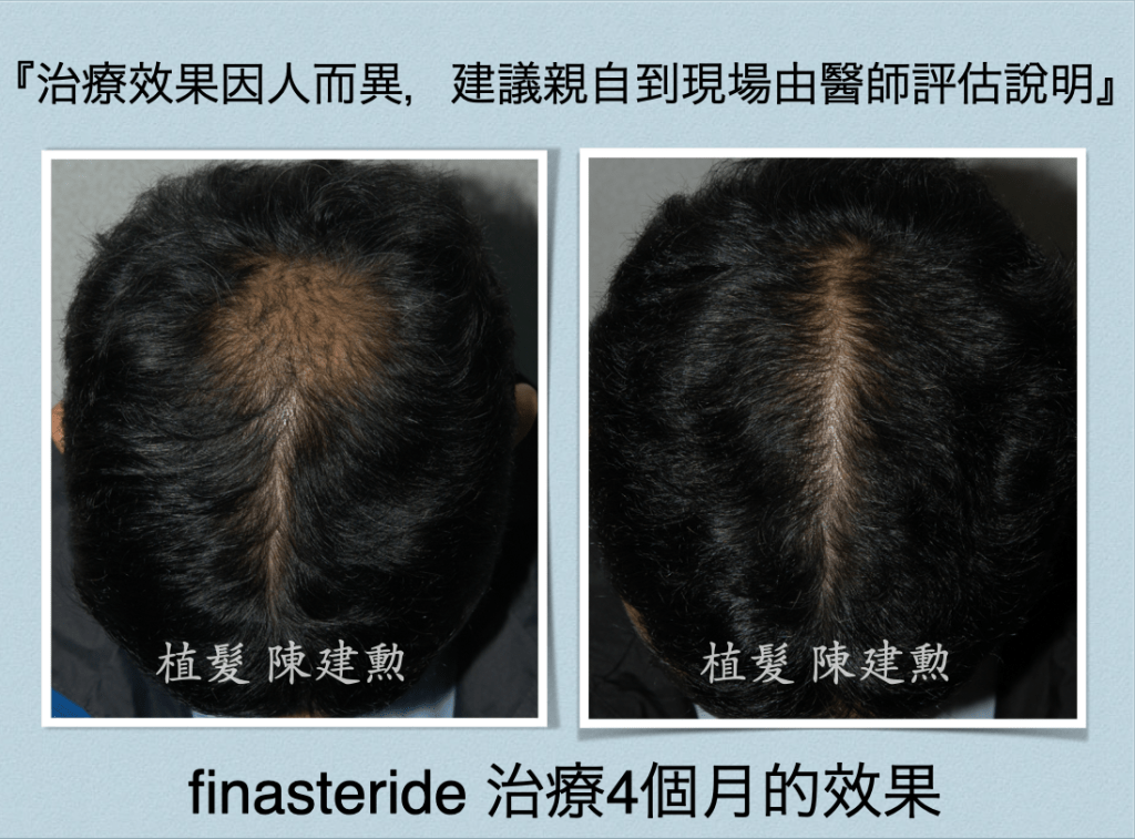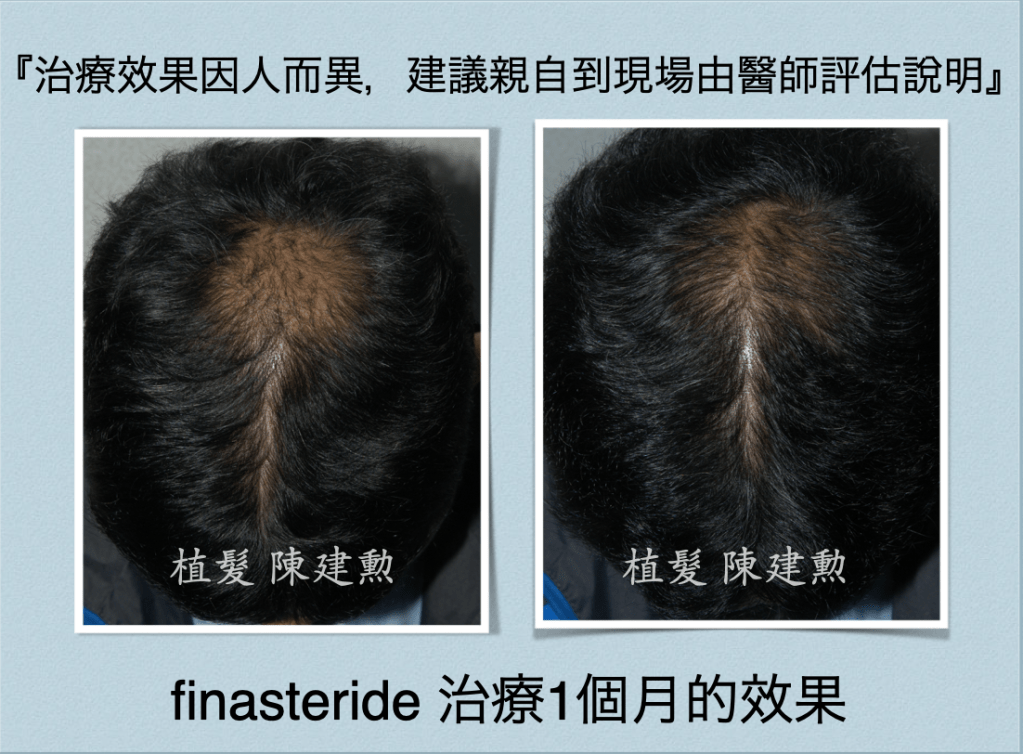 從結果反推回來,在短短治療一個月之後就有辦法看到頭髮變多,一定是吃下finasteride那一剎那就開始產生作用,不然頭髮生長速度是一個月一公分,如果不是馬上生效,一個月根本看不出變化。