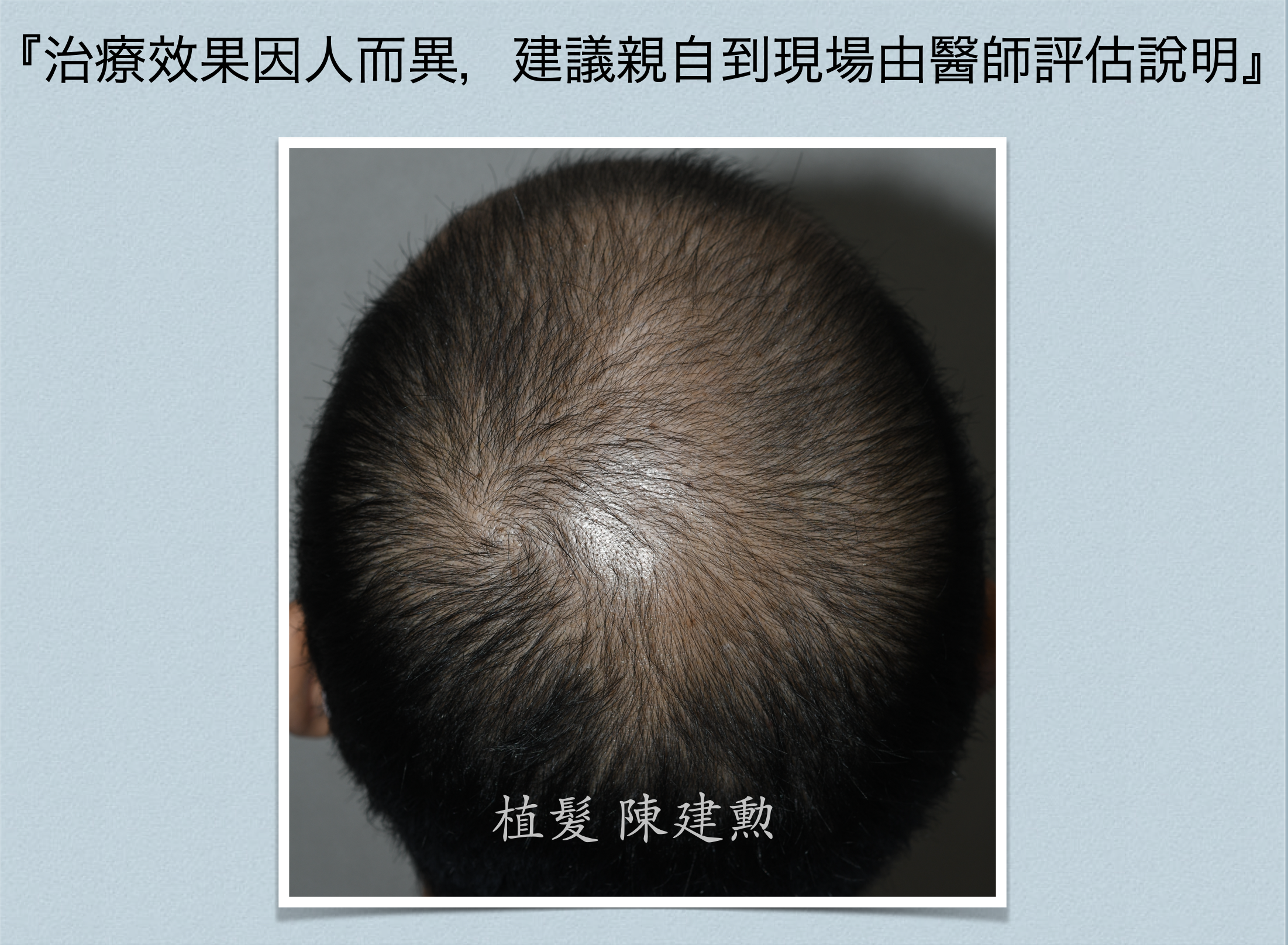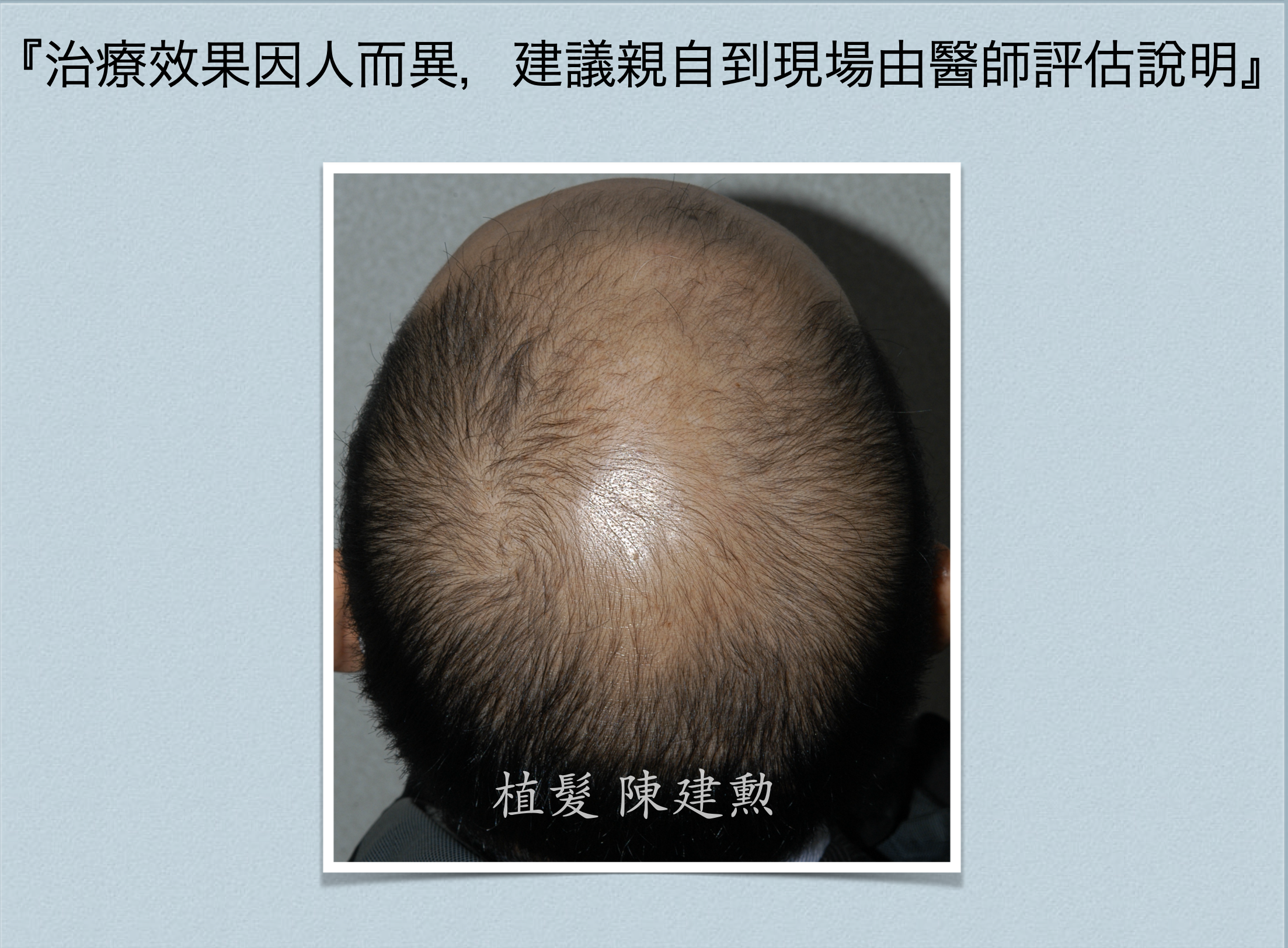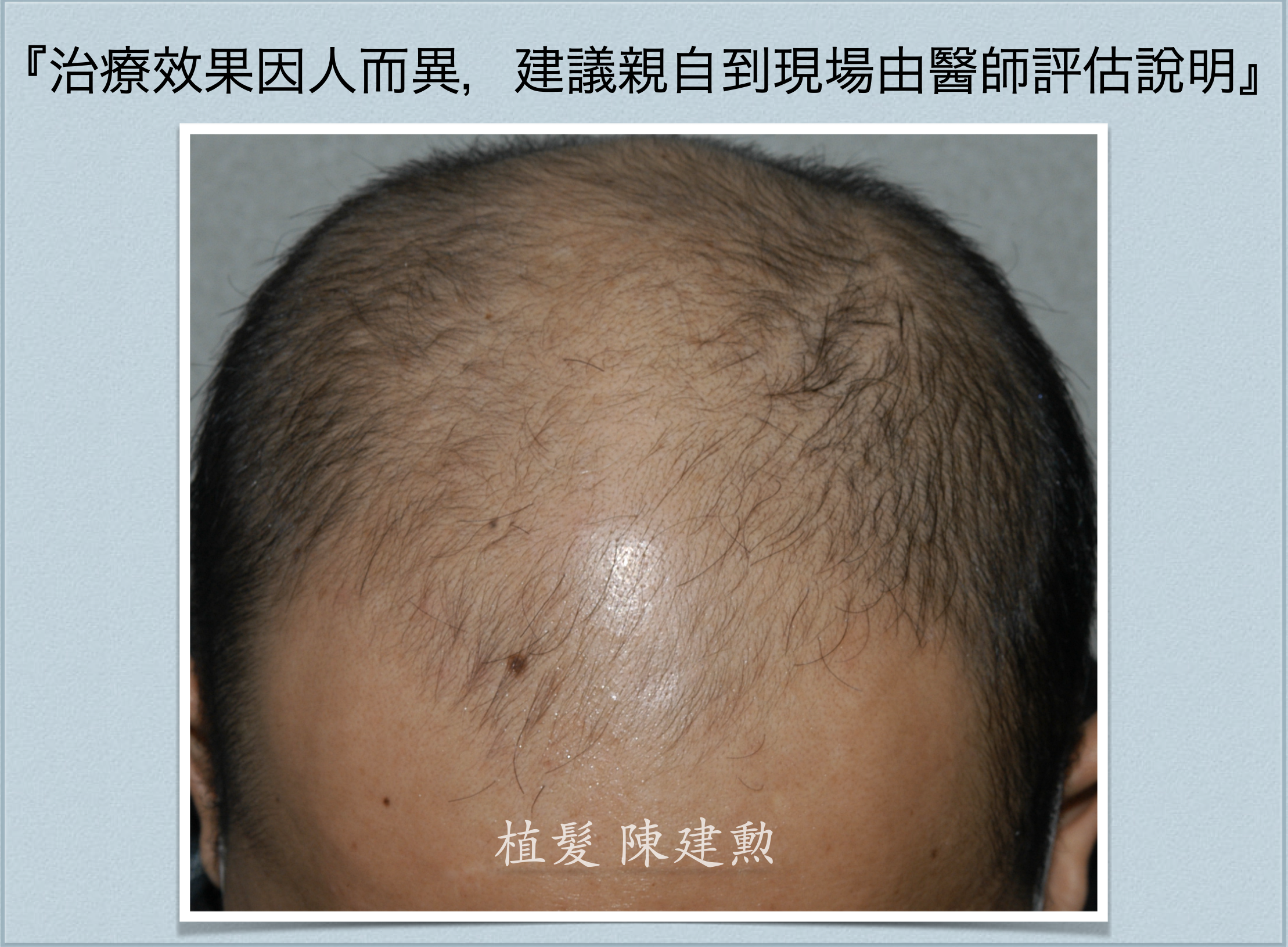 病人也才剛進入30~40歲的後半段班,如果繼續禿下去,那豈不是要一直植髮下去。