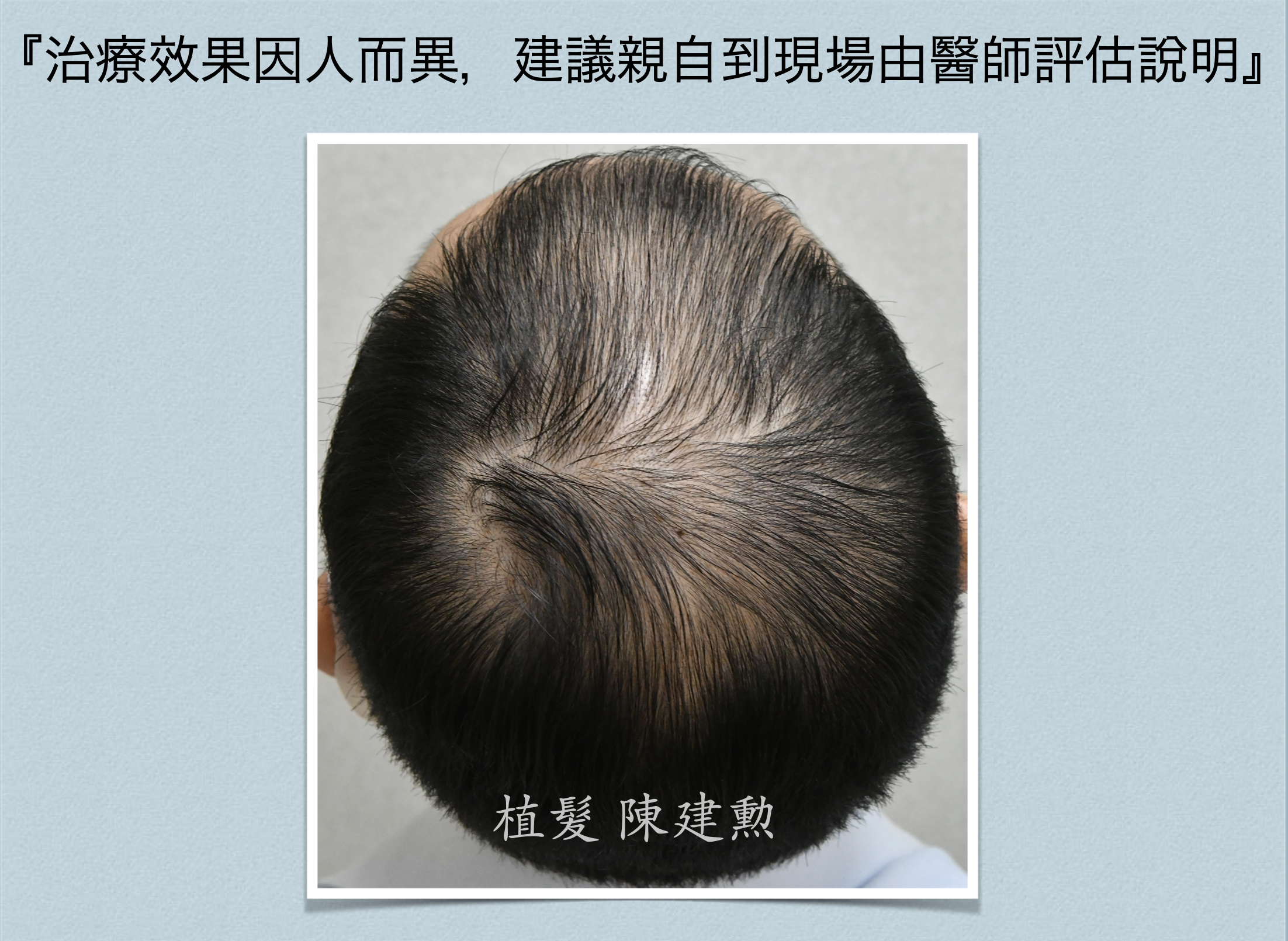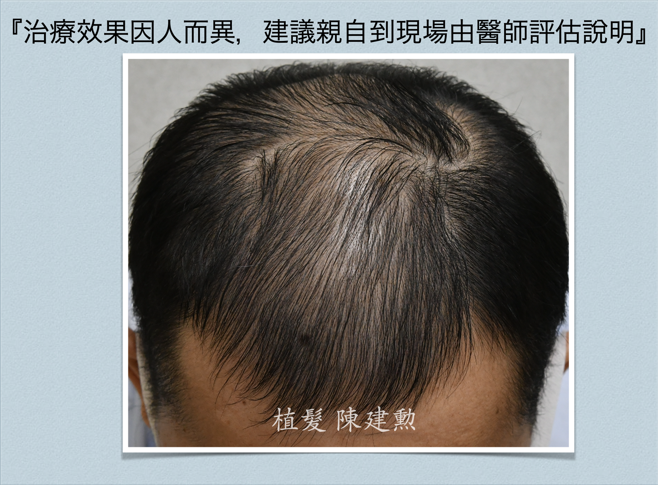 到了這種地步,即使不能再更好,接下來做個植髮手術相信會更容易達到符合這病人年齡的髮量,豈不更美!