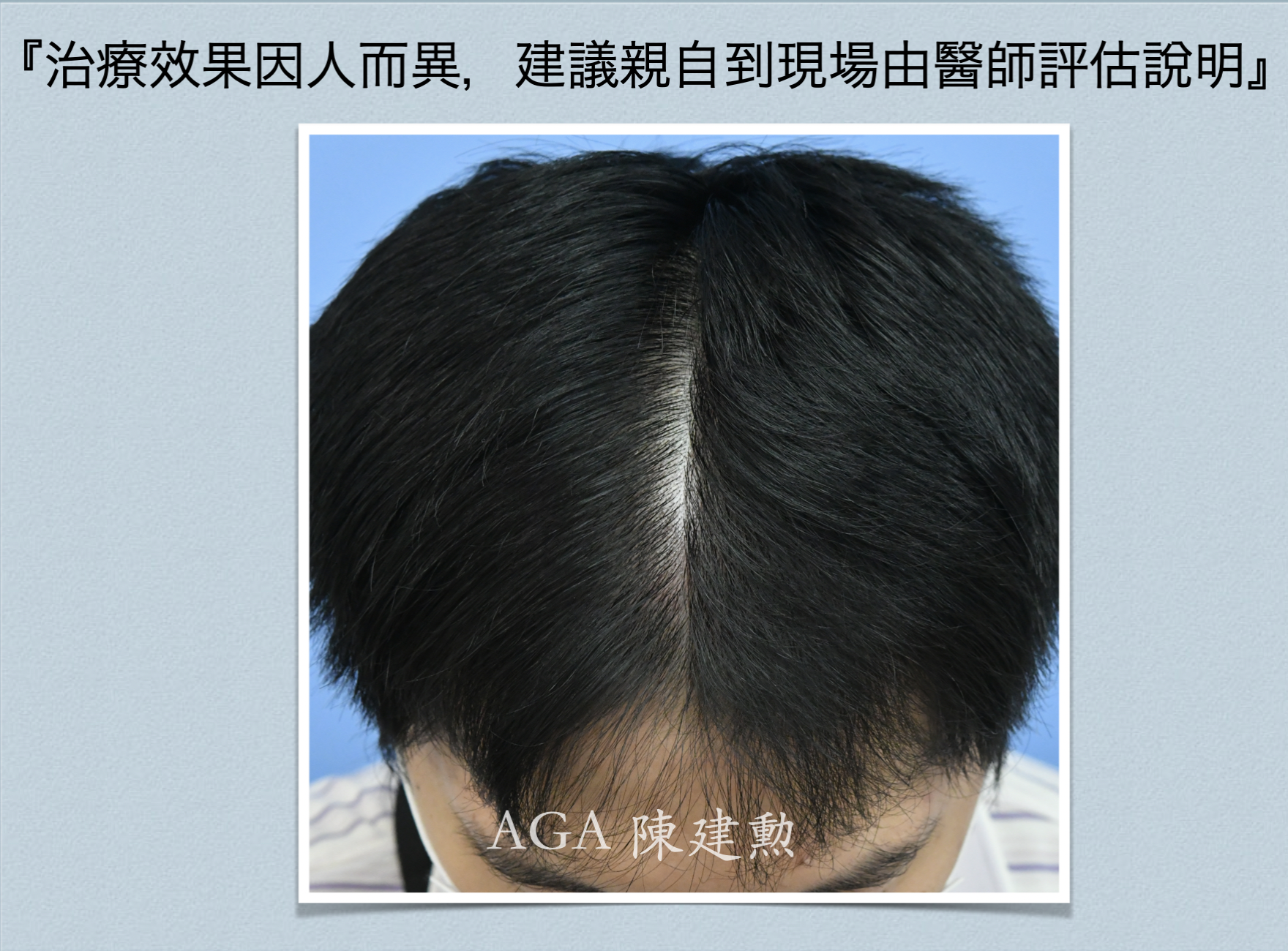 咦,這下看起來好多了不是嗎?!不過病人覺得dutasteride造成的副作用對他有些困擾,決定還是回頭改成finasteride,但是仍保留口服minoxidil。