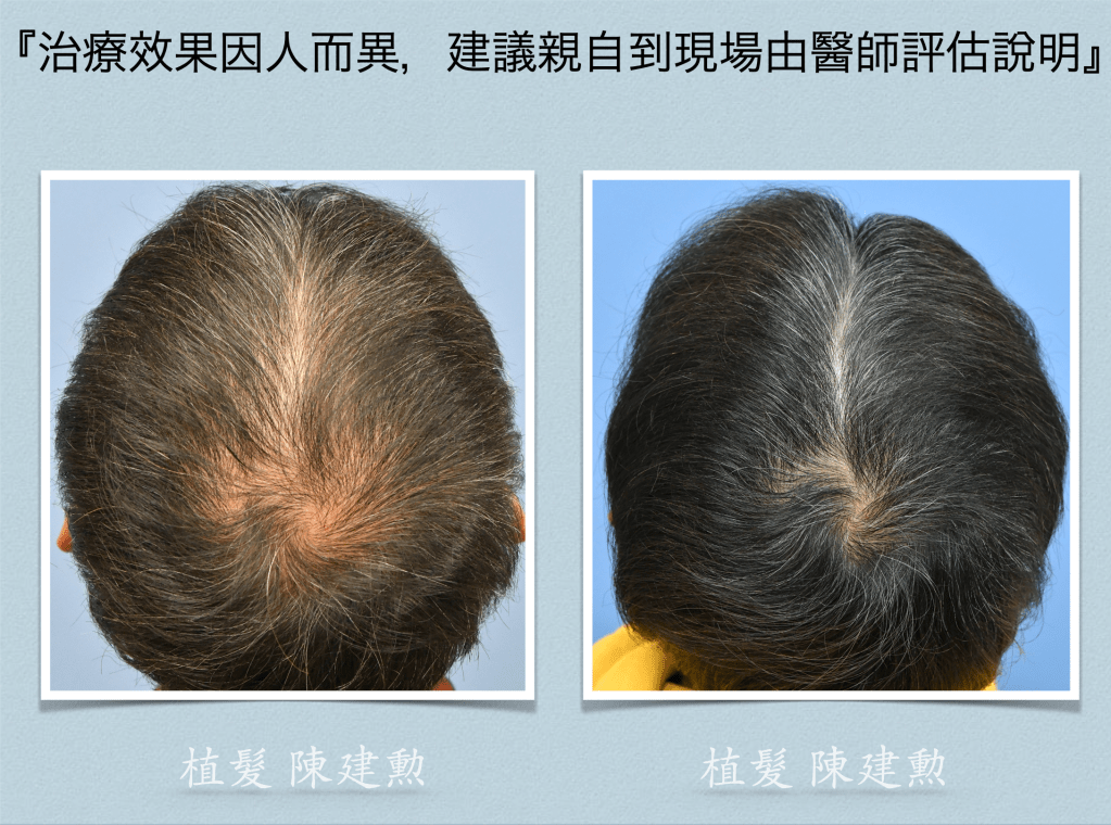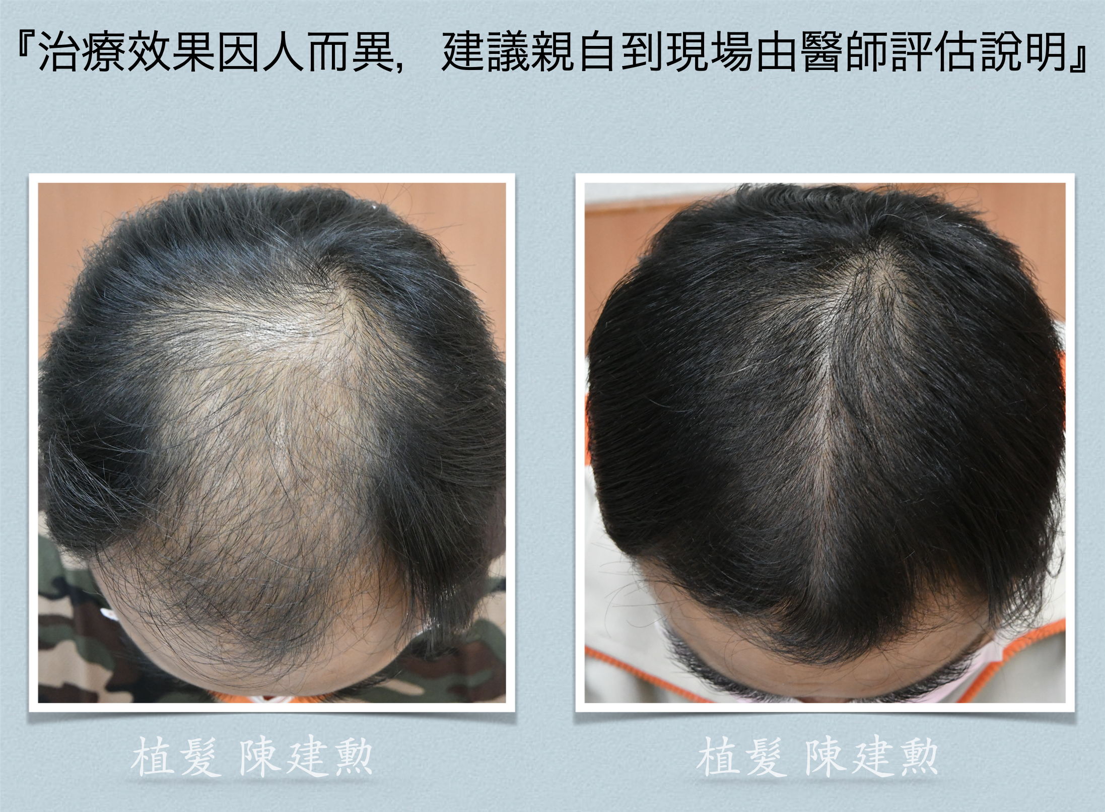 以前只開finasteride 或dutasteride 的時候幾乎都得特別叮嚀病人一句話「只要頭髮沒少,就是有效」偶爾遇到幾個長得很好的病人還會特別把照的相片整理做紀錄,因為100個病人裡大約只有5-10個會長得很好。